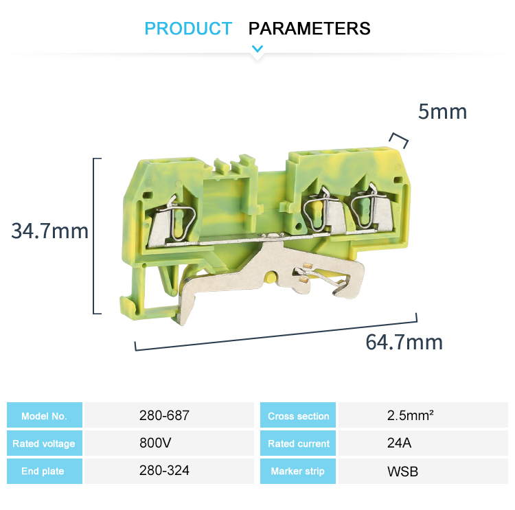 280-687 Yellow Green Spring Cage Feed Through Earthing Ground Terminal Blocks Din Rail Images |